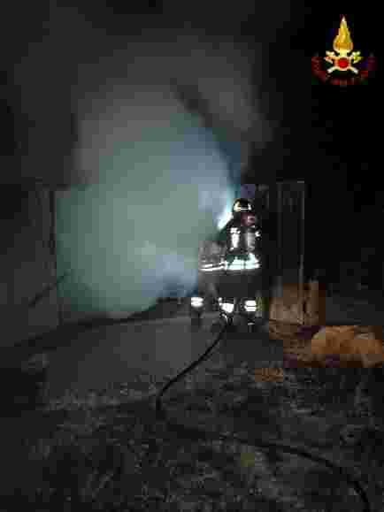 Incendio distrugge box nella notte, intervento dei Vigili del Fuoco